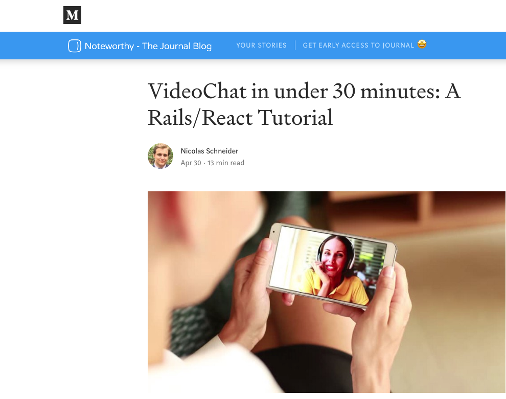 A React tutorial designed to build a scalable web video chat application. Published by Noteworthy.